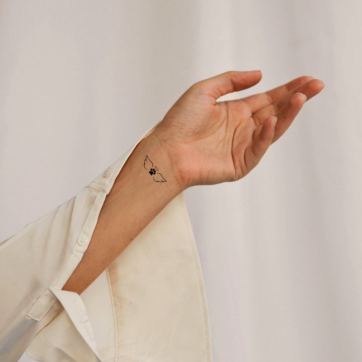 Ce tatouage temporaire représente un ange délicat, symbole de protection, de paix et de spiritualité. Sa silhouette fine et légère se pose subtilement sur votre peau, apportant une touche céleste et rassurante. Idéal pour le poignet, la nuque ou la cheville.